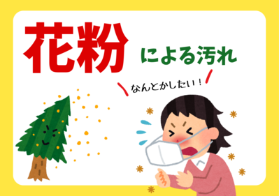 • 花粉・黄砂: 表面にうっすらと黄色い膜を張ったような汚れ